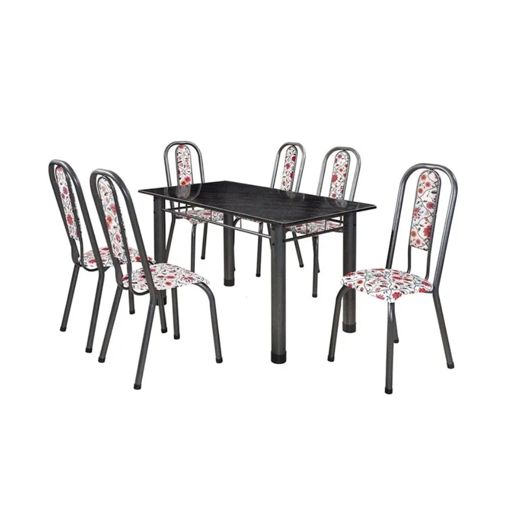 Mesa Gol 6 Cadeiras Prata Floral 140 Granitada